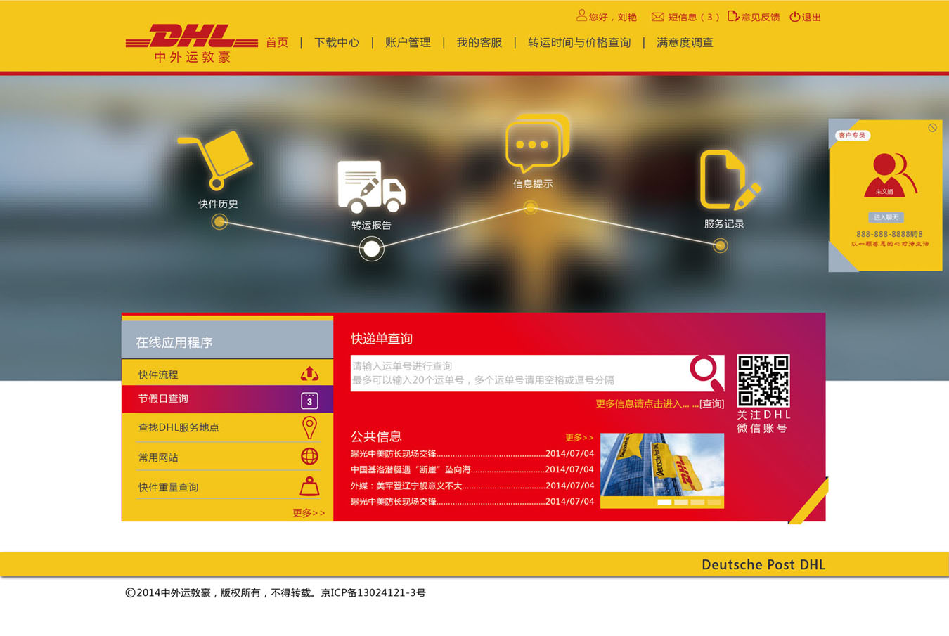 DHL客戶服務(wù)系統(tǒng)UI界面物流業(yè)的航母![]() ![]() ![]() |