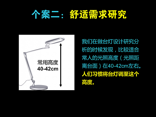 產(chǎn)品設(shè)計(jì)中人性化研究?jī)?nèi)容之廣泛,其中主要包含:安全需求、舒適需求、健康需求、審美需求、面子需求、趣味性需求、操作體驗(yàn)等由產(chǎn)品滿足用戶的各種需求。設(shè)計(jì)師為用戶尋找滿意答案。