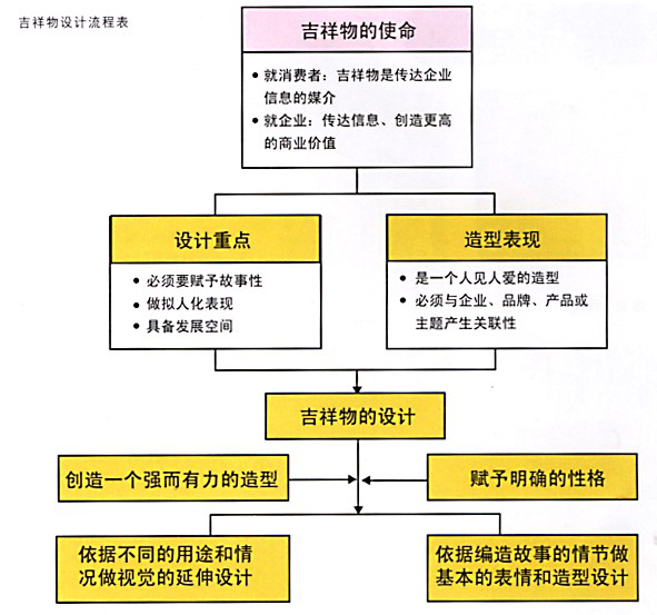 在對企業(yè)、個人、商品或活動的主題、特色、設(shè)計需求及角福色定位有全面的確了解后,接下來即可展開設(shè)計的作業(yè)。而在設(shè)計作業(yè)中基本上可分為找尋設(shè)計方向、尋求設(shè)計主題、確定基礎(chǔ)造型、造型延伸設(shè)計等階段。以下對各不同階段作業(yè)的重點(diǎn)和該注意的問題作一個概略的介紹。